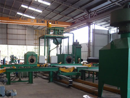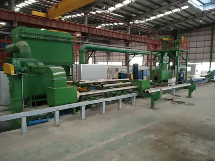 钢管内壁抛丸机主要用于钢管内表面的抛丸处理,不但可以去除钢管表面的氧化皮或者锈蚀,清理工件上的油污等杂质,还可以清除工件的应力,提高工件的疲劳强度,并最终达到提高整个工件表面及内在质量的目的,以利于工件的喷漆及涂敷。